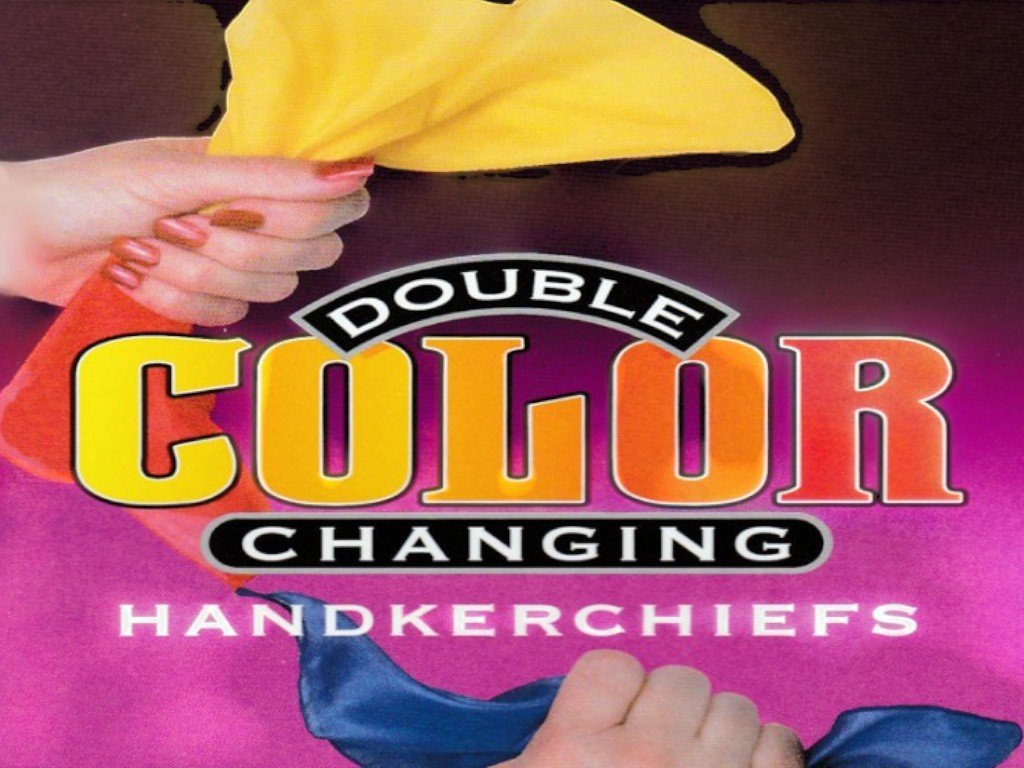 Dva šátky svázané dohromady magicky změní barvu, jakmile kouzelník nad nimi přejede rukou!