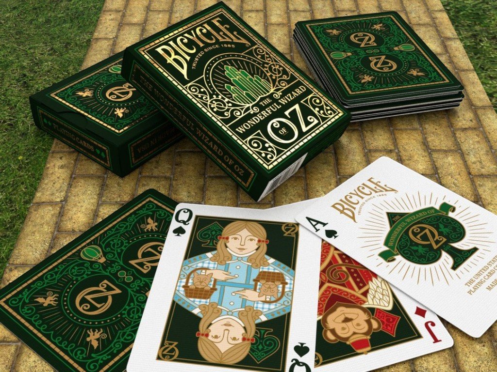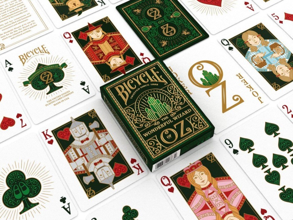 Karty Bicycle Wizard of Oz využívají povrchovou úpravu Air-Cushion Finish, která zajišťuje plynulý skluz, čisté vějíře a komfortní míchání. Skvělé pro kouzla, cardistry i běžné hraní.