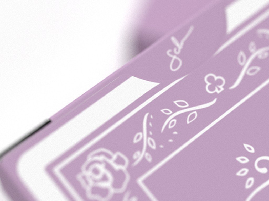 Letní levandulový tón s přepracovanými lícovými kartami vytištěnými na prémiovém tenkém papíru s tradičním řezem dodává balíčku moderní vzhled.