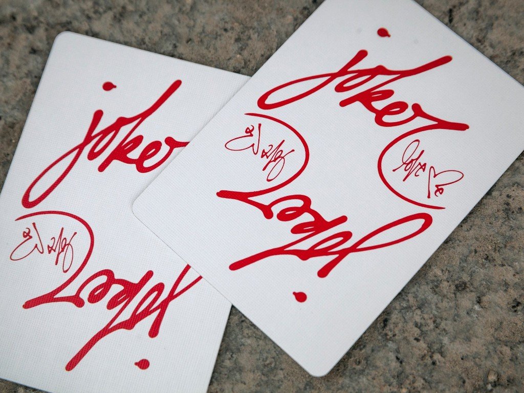 Klasické žolíkové karty s ručně vytvořeným designem od Curtise Kuliga, který použil námět ze svojí světově proslulou kultovní kampaní Love Me.