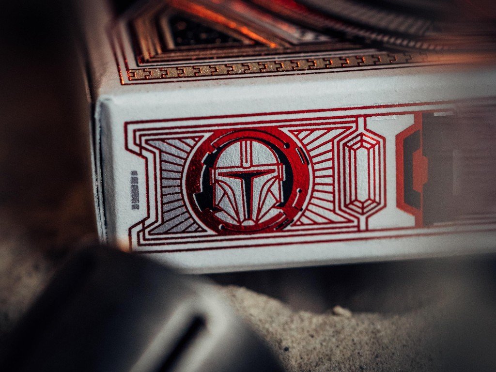Karty jsou baleny v elegantní krabičce s precizní ražbou a motivy, které zachycují ducha Mandaloriana a jeho dobrodružství.
