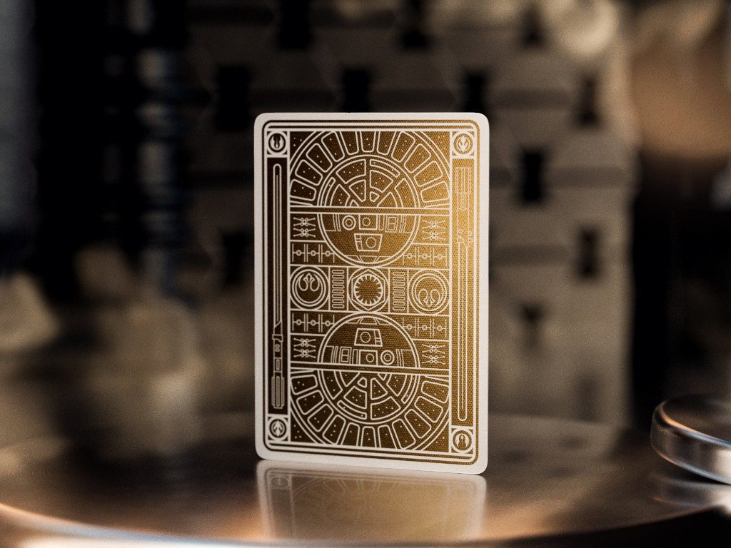 Prémiové hrací karty Star Wars Gold Edition přinášejí elegantní a luxusní design s detaily ve zlaté barvě, které potěší každého fanouška galaxie daleko, daleko odsud.