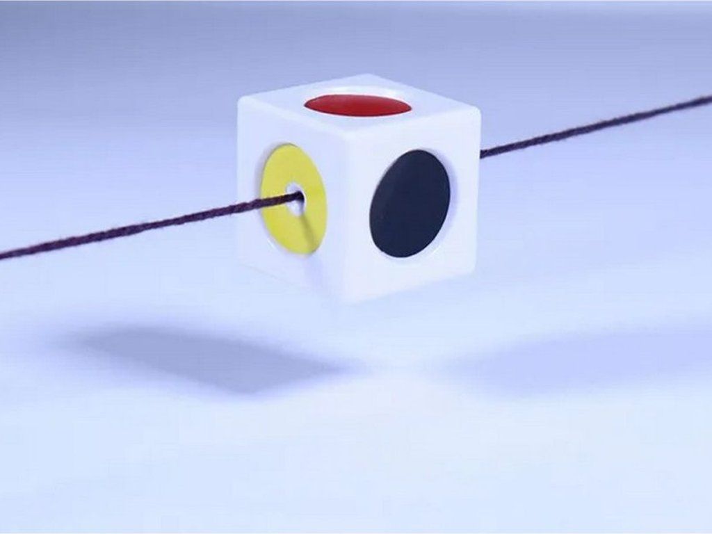 Kostka, která na provázku vzdoruje gravitaci, kostička padá pouze na kouzelníkův příkaz. Divák si vše může prozkoumat, přesto nikdy nic neobjeví.